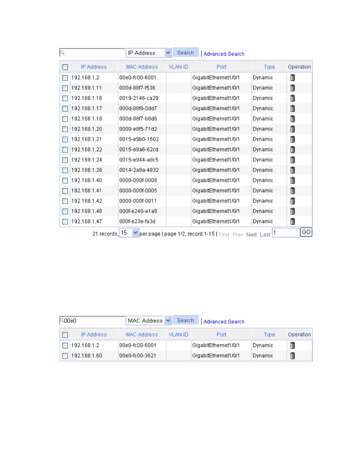 • Advanced search: Advanced search function: As shown in Figure 165, you can click the Advanced