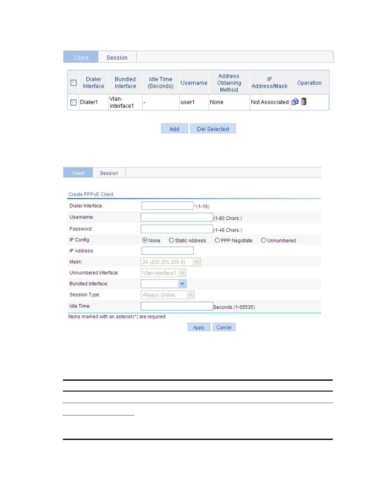 2.  Click Add to enter the page for creating a PPPoE client, as shown in 2.