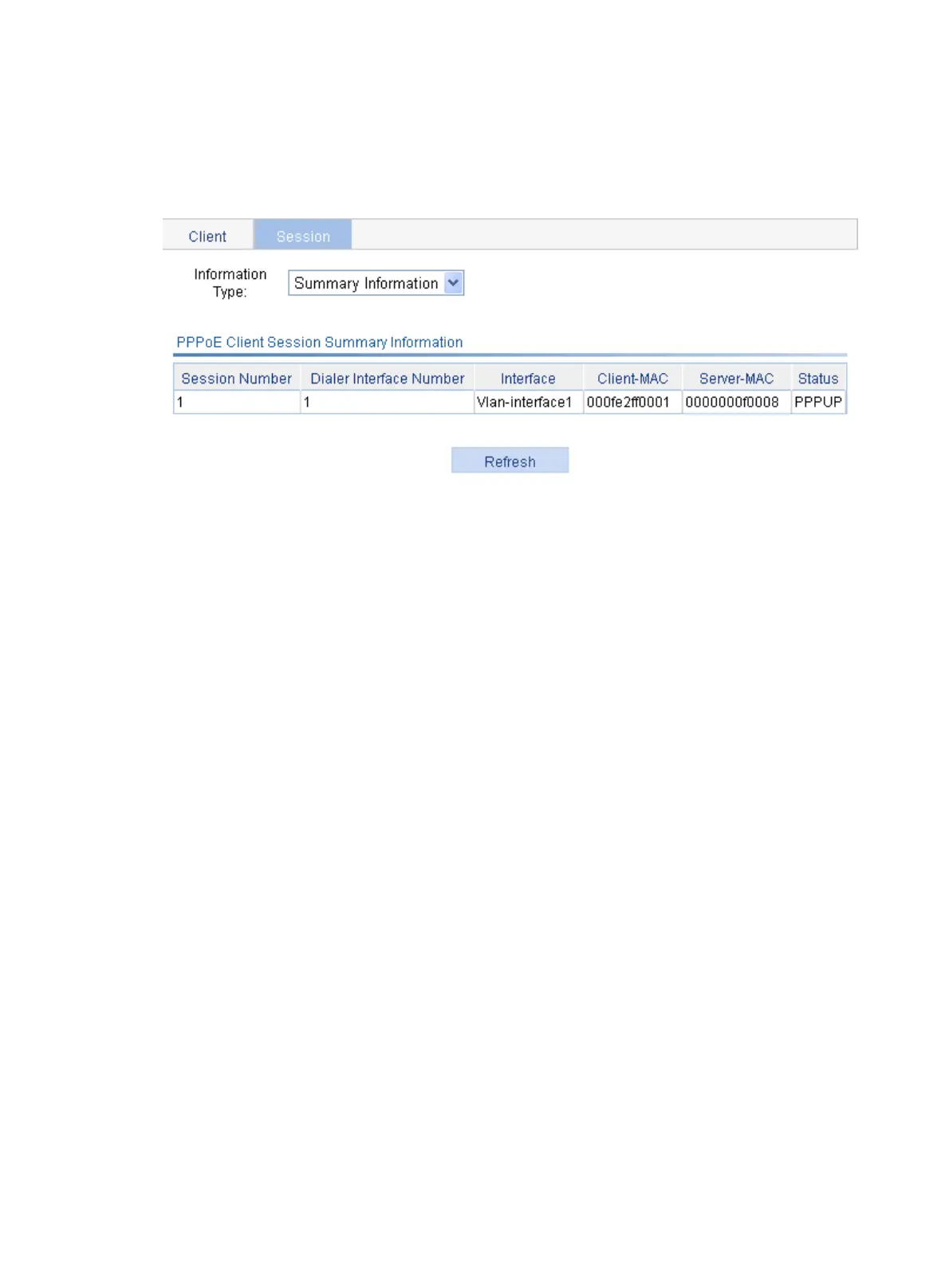 1.  Select Network > PPPoE from the navigation tree of the AP and click the Session tab.