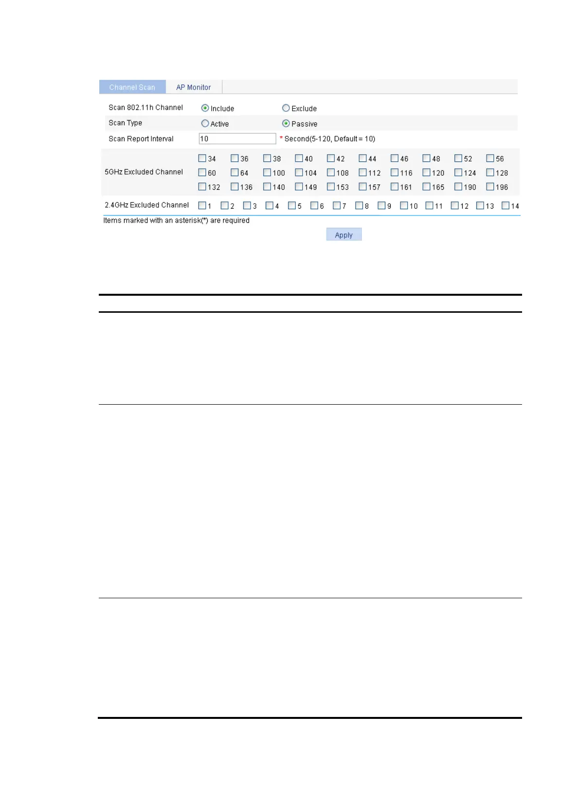 • Exclude—802.11h channels are excluded in initial channel scanning.
