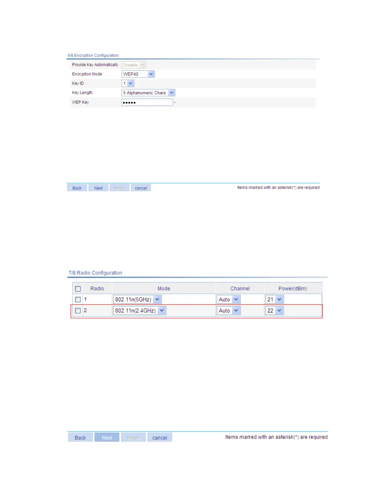e. Click Next to enter the radio configuration page.