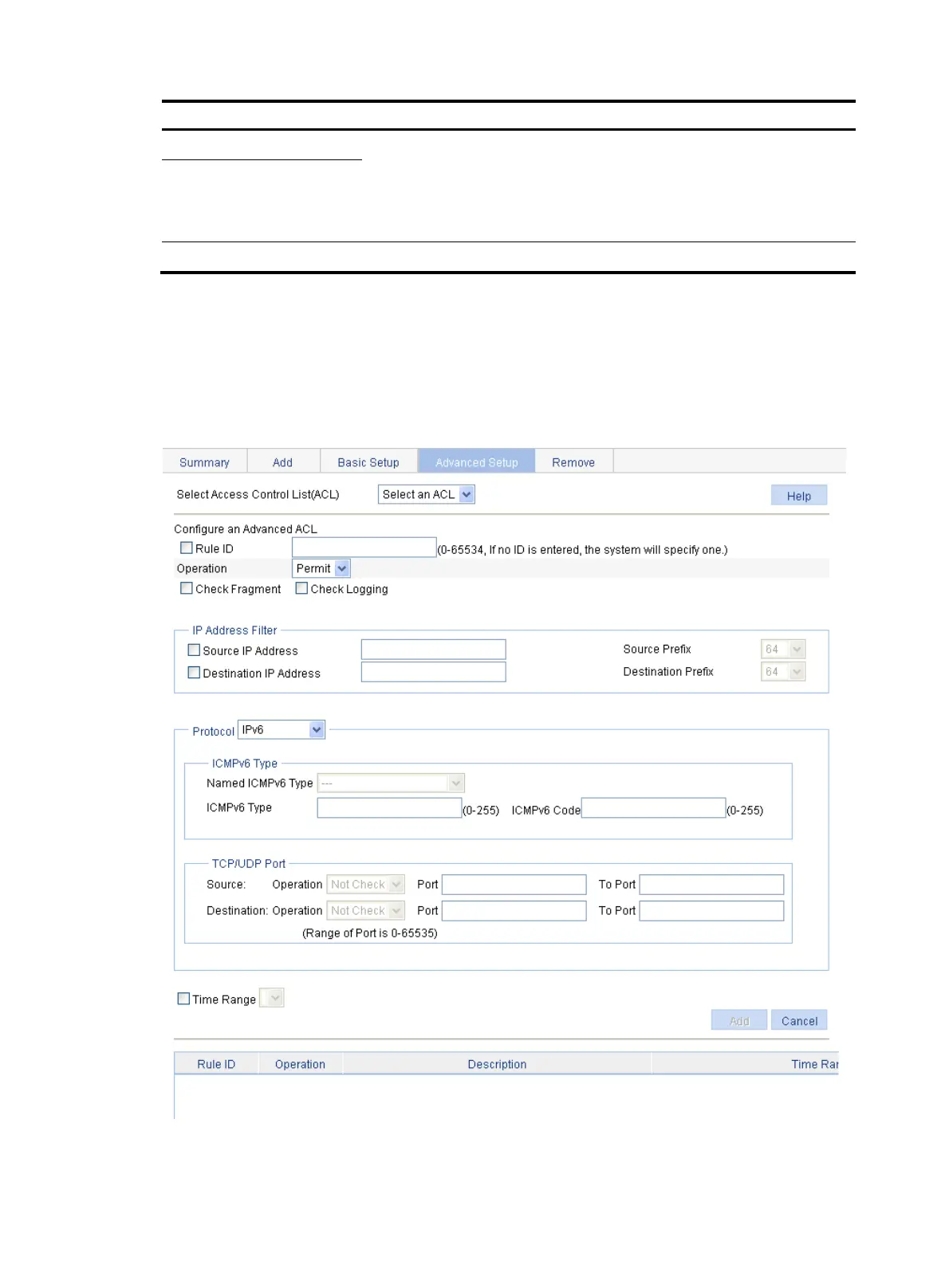2. Click the Advanced Setup tab to enter the rule configuration page for an advanced IPv6 ACL.