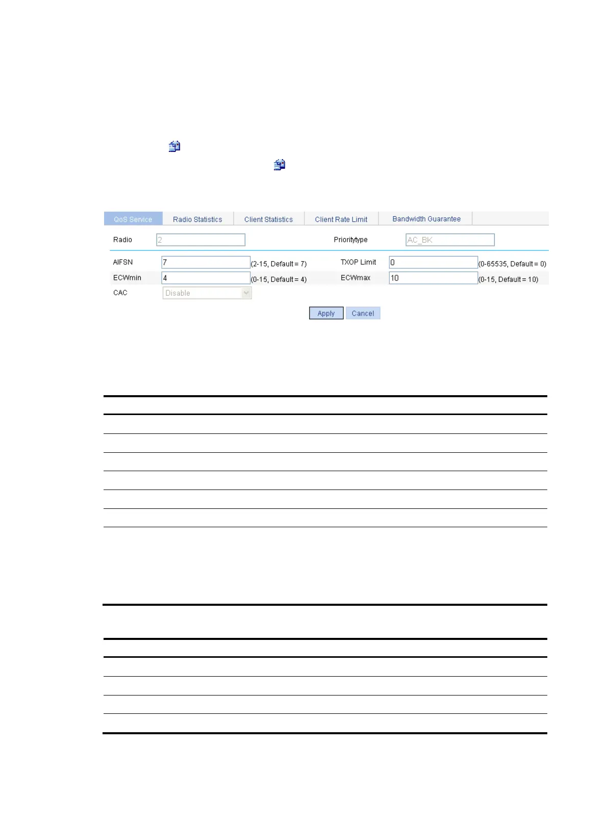 3. On the client EDCA list, click the icon for the desired priority type (AC_BK, for example) to