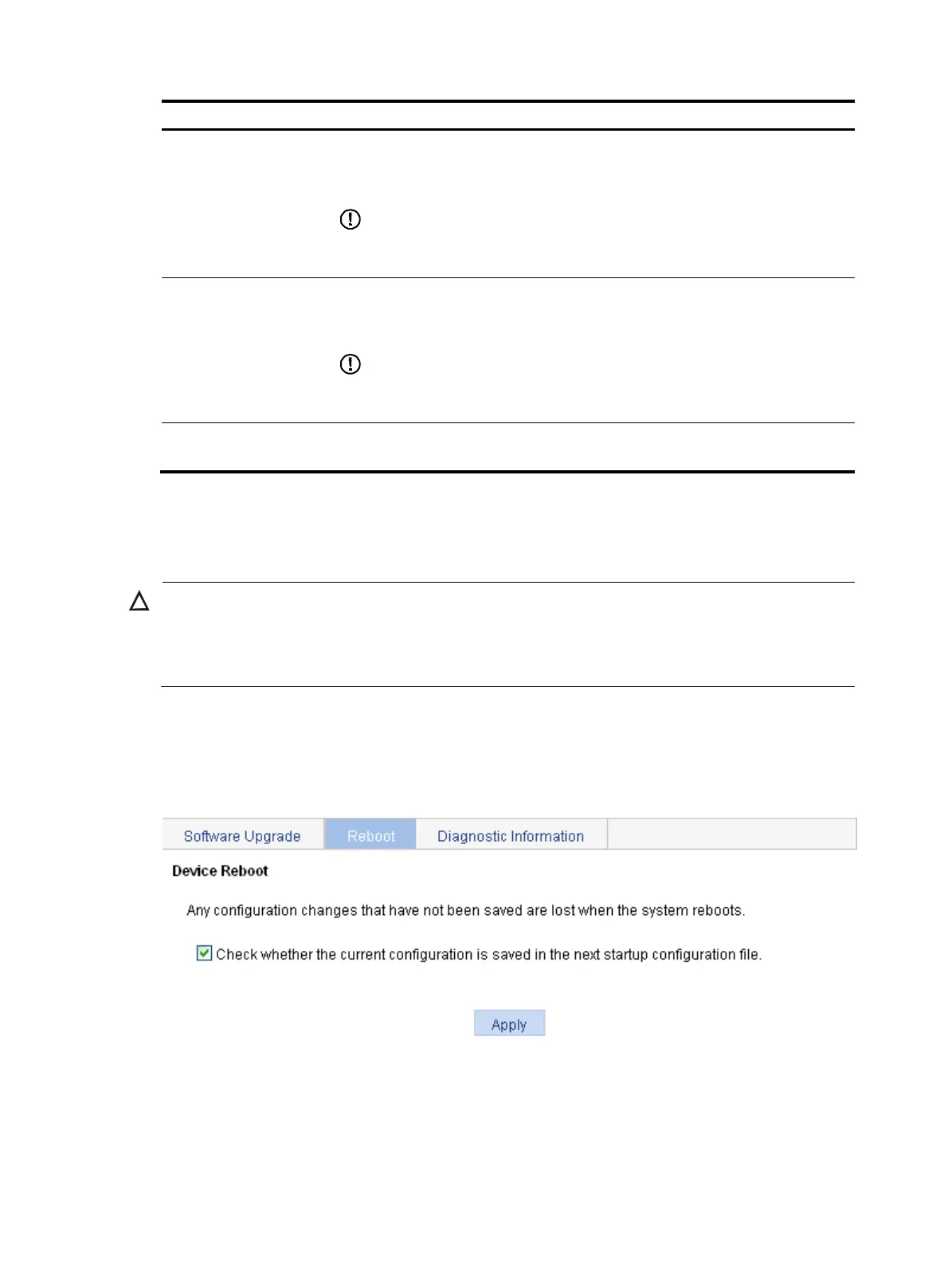 • Before rebooting the device, save the configuration. Otherwise, all unsaved configurations are lost after