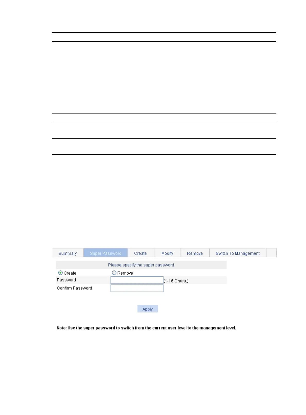 3. Set the super password as described in Table 34.