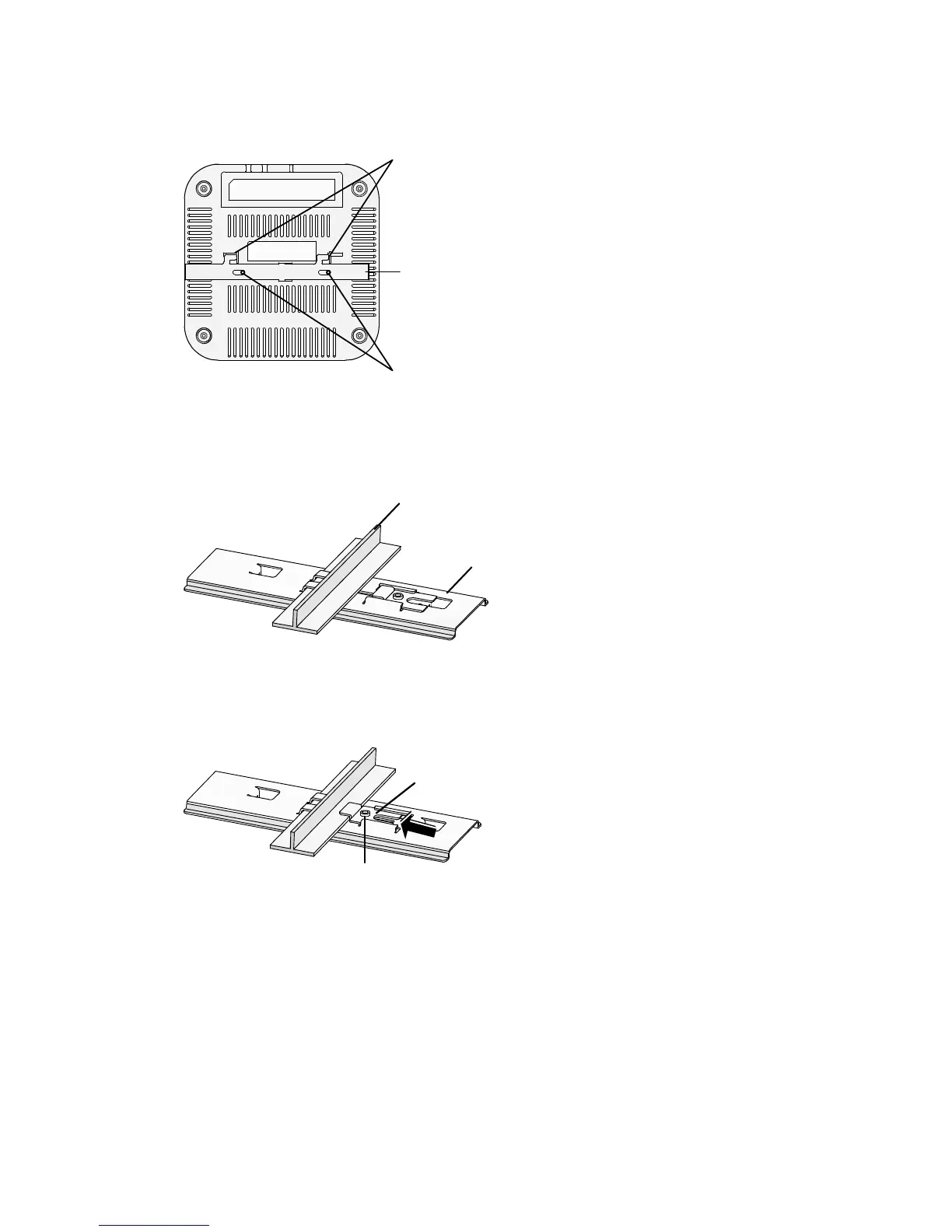 4. Position the AP so that the two tabs from the ceiling bracket can be inserted in the