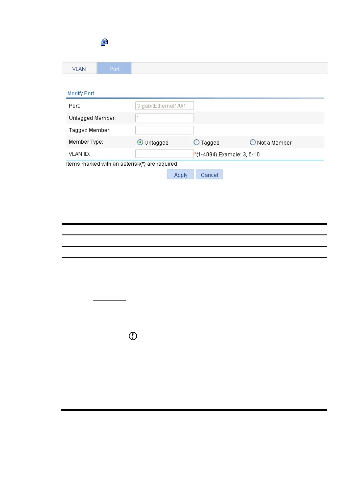 VLAN ID Specify the VLAN to which the port belongs.