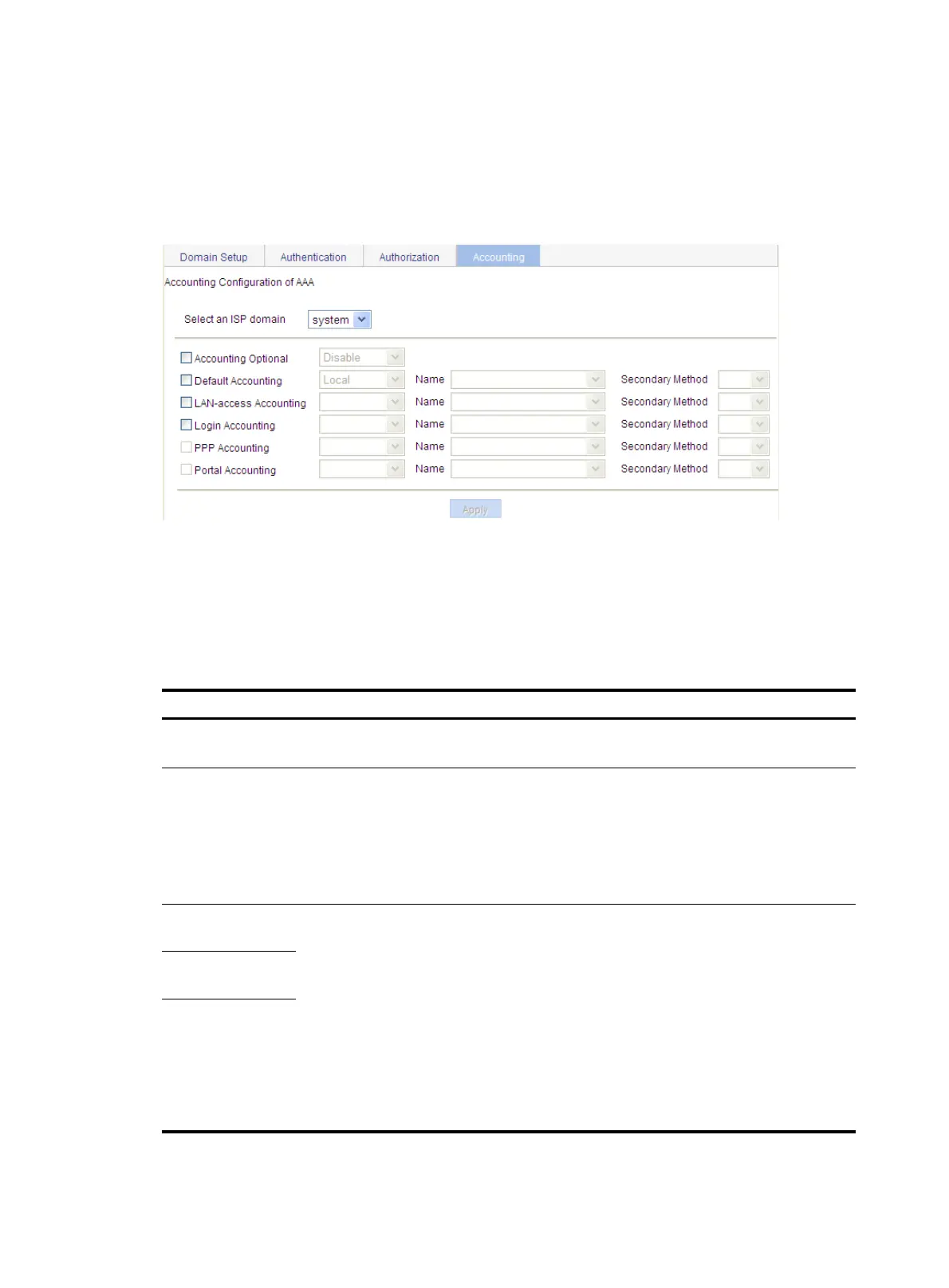 • Not Set—The device uses the default accounting setting, which is local accounting.