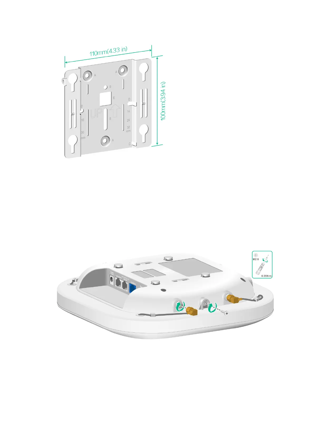To install a directional antenna, put the antenna over the AP front, use M2.6 × 6 mm screws to