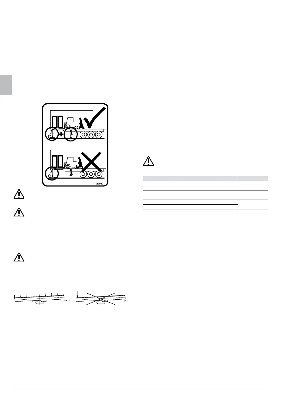 Do not charge unbalanced loads. Only distributed loads are admissi-