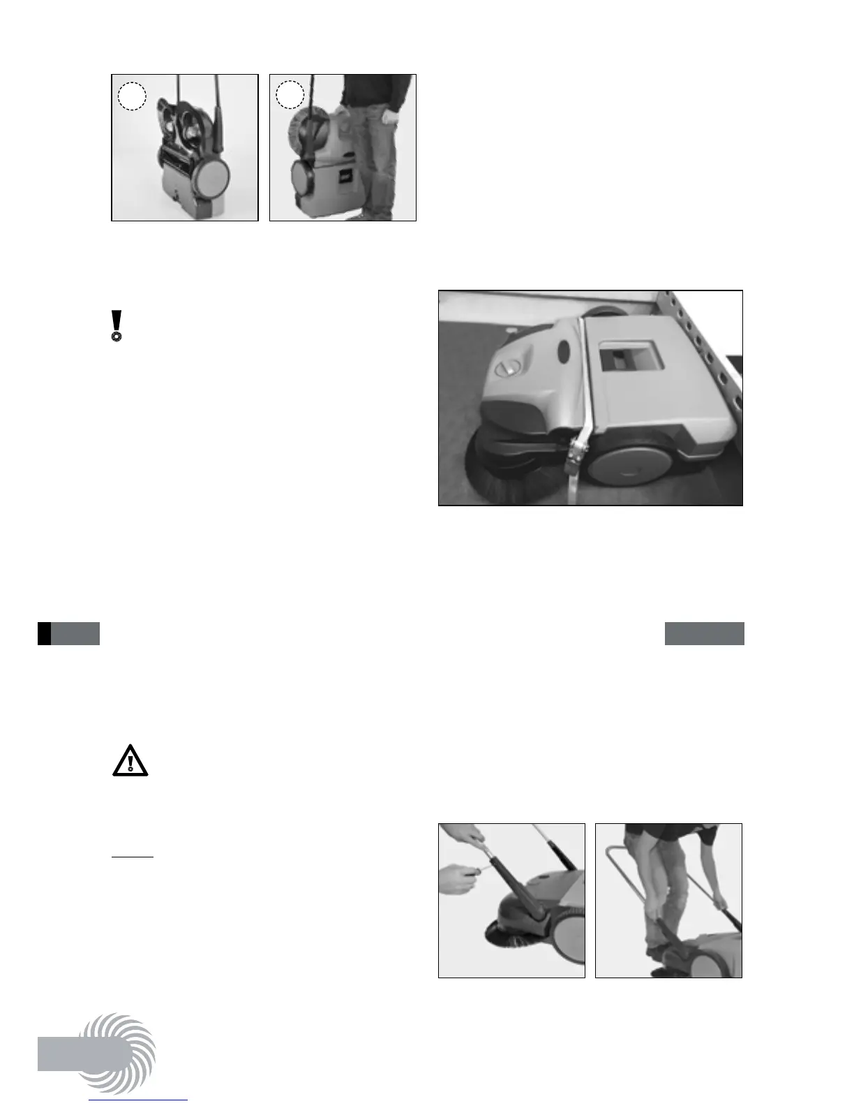 • Secure the sweeper with a suitable