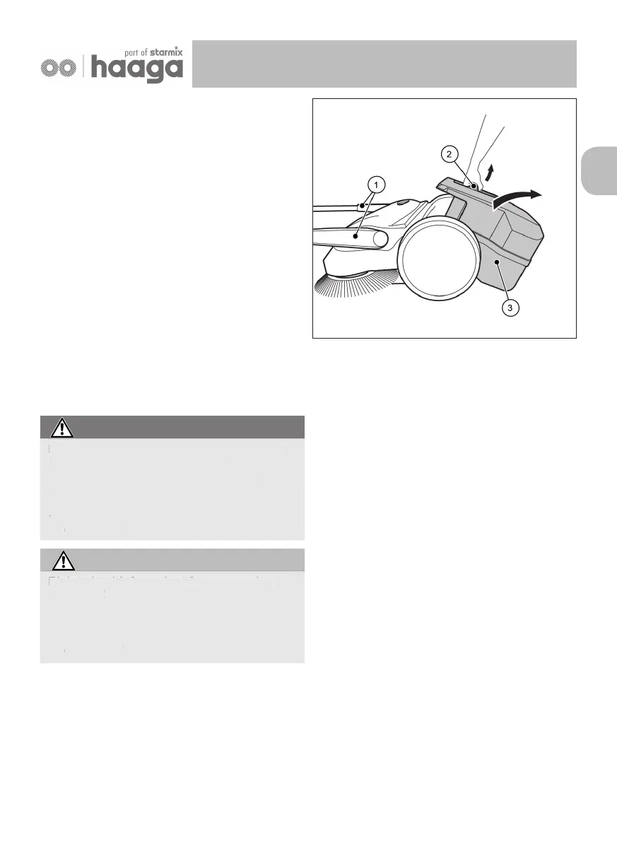 Haaga 677 - 7.6 Manual operation; 7.7 Empty sweeping container