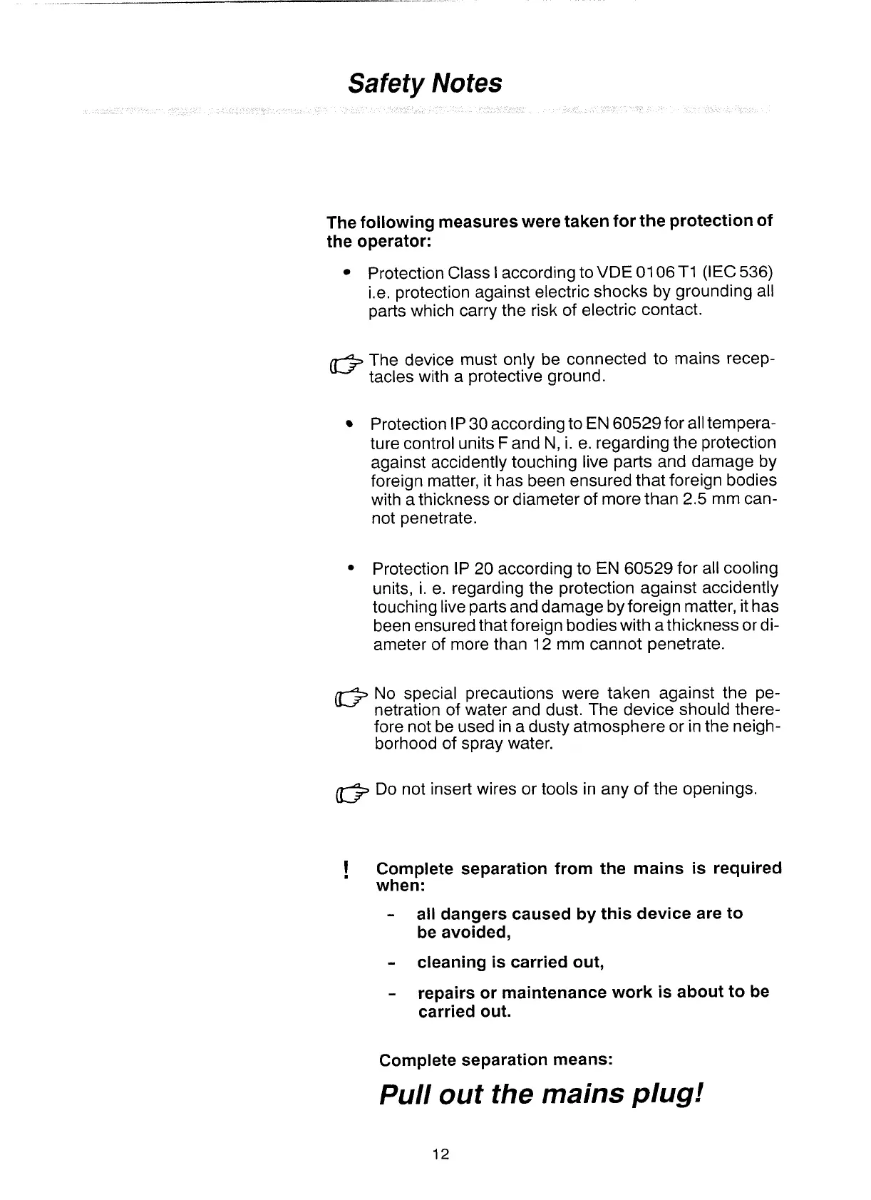 Complete separation from the mains is required