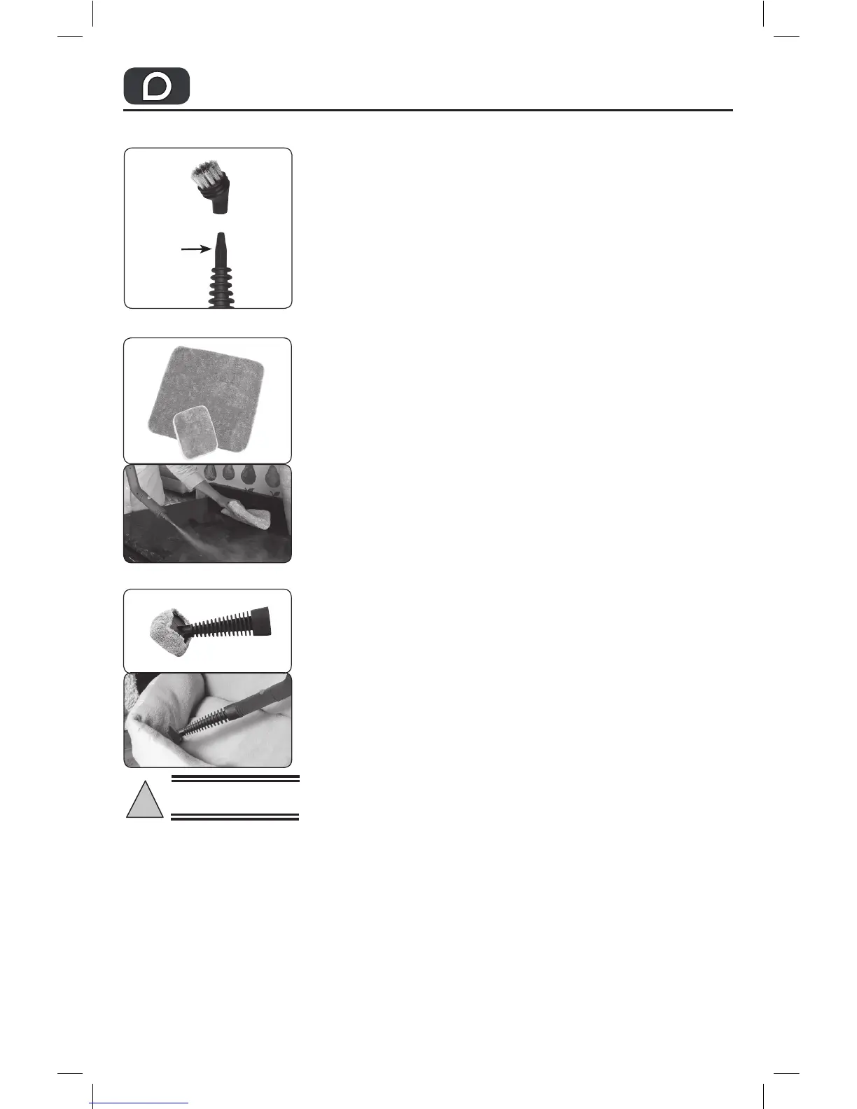 2) By attaching the Cleaning Sock the steam will