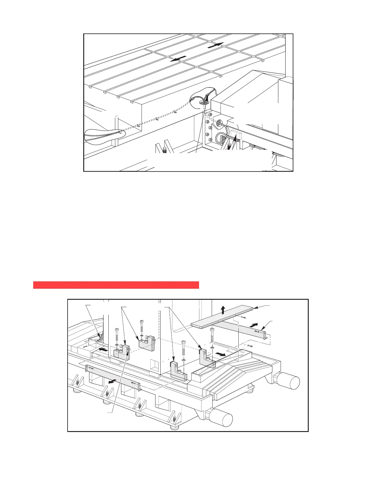 12. Check cable clearances under the table for the full X-axis travel and secure where necessary.