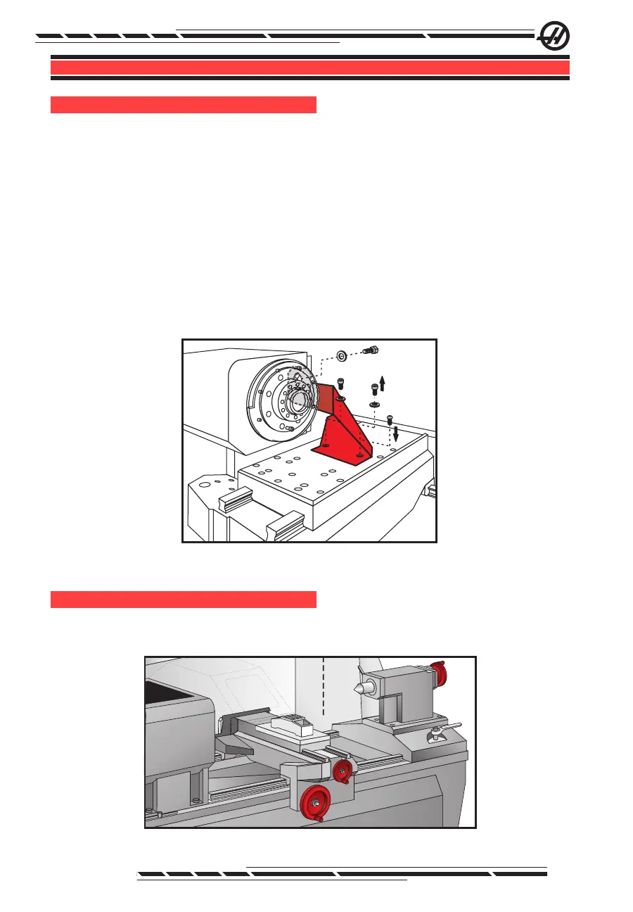 1. Remove six red shipping brackets; three from the base of the tailstock, one