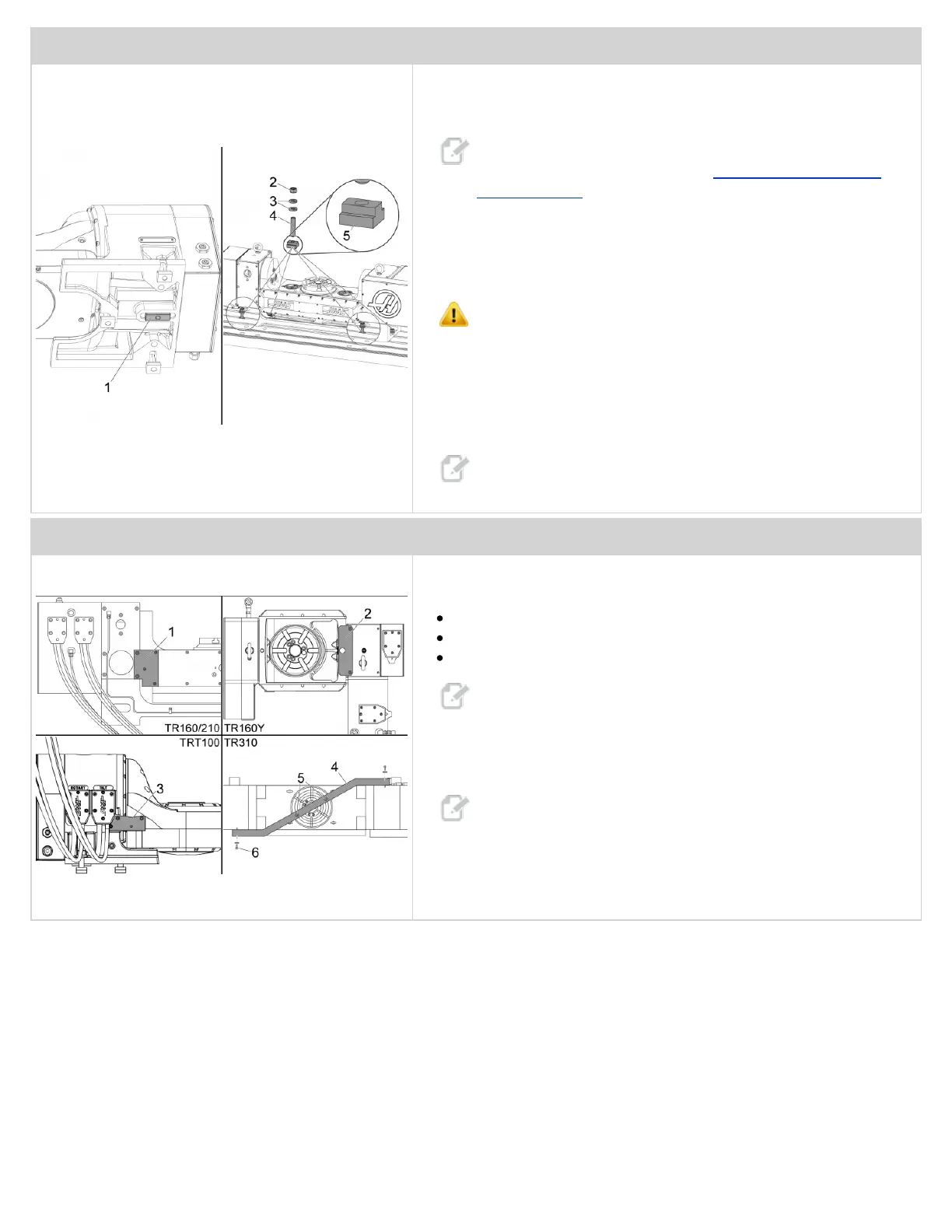 For a TR310, remove the (4) 1/2-13 screws and washers [5] and [6] from