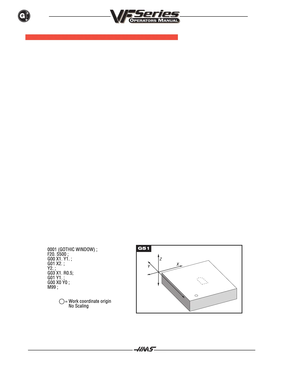specified in the G51 command block, then the current work coordinate position is used as the scaling center.