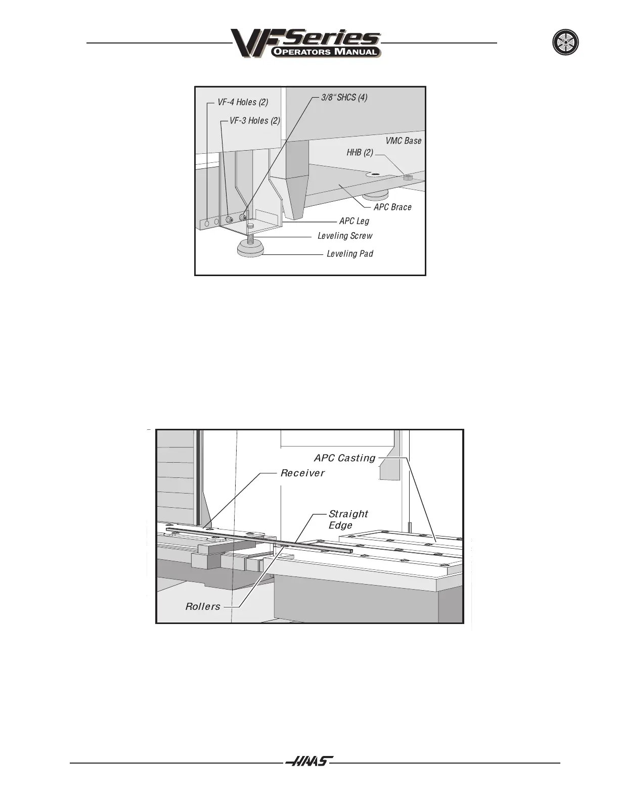 12. Place the straight-edge on top of the rollers of both the VMC receiver (unclamped) and the APC, to