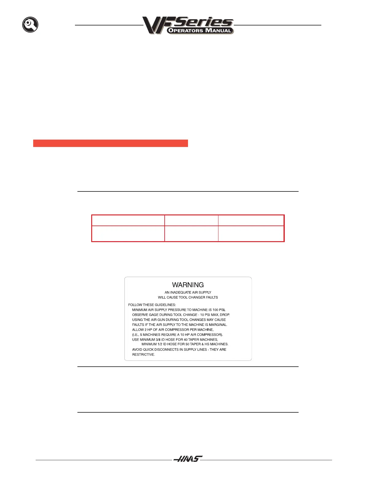The VMC requires a minimum of 100 PSI at 4 scfm at the input to the pressure regulator on the back of the