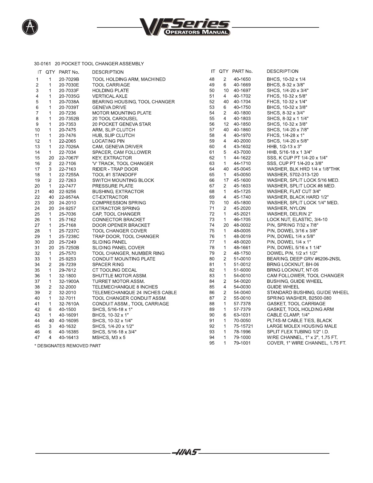20 Pocket Tool Changer VF- O/1/2