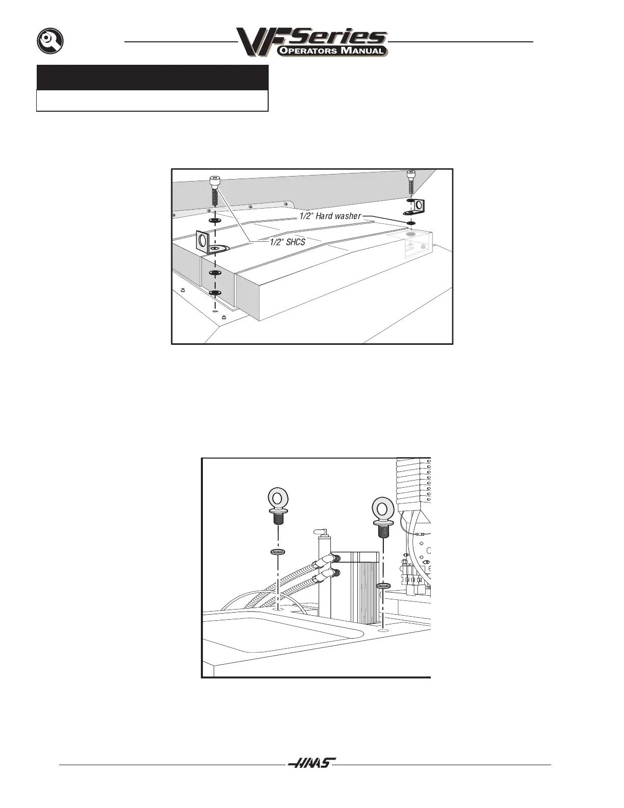 3. Install the lifting brackets with (2) 1/2"-13 SHCS and (2) 1/2' hard washers, [(2) washers under