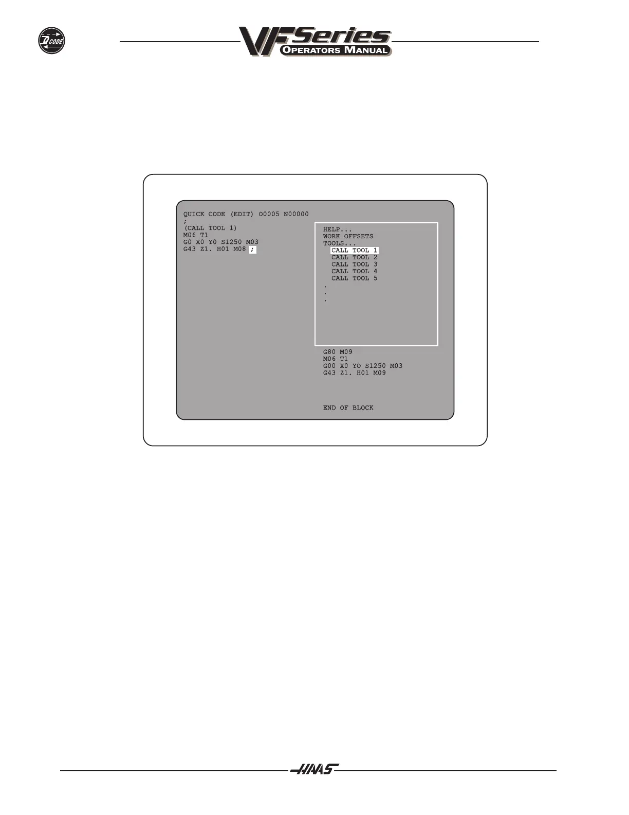 that QUICK CODE inserts into your program. You do not have to leave the QUICK CODE display to do this.