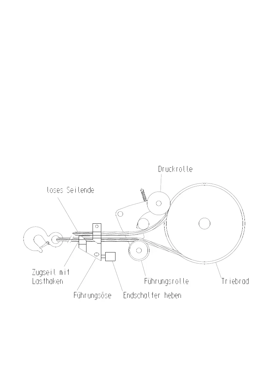 6. Lasthaakkabel over geleidingsrol (wip naar beneden drukken).