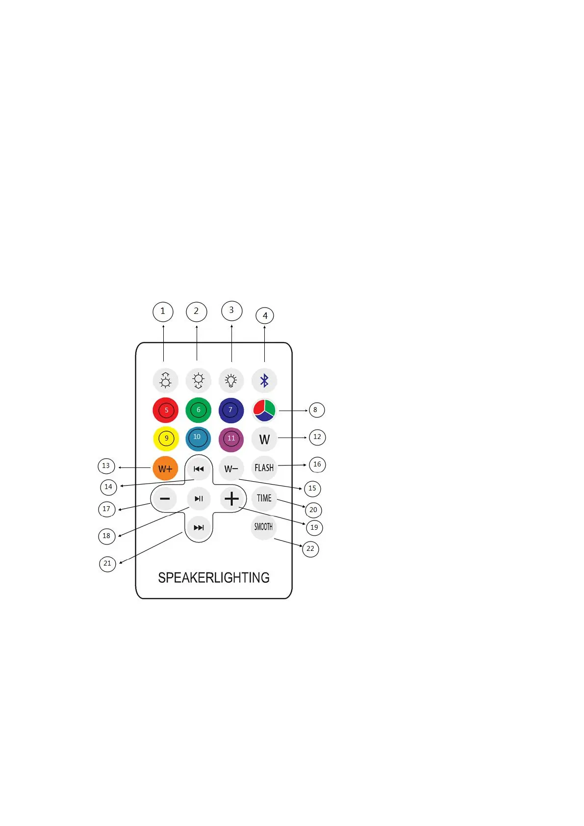 5&6&7&9&10&11&12: Color selection button .When the light is on Press this button to choose your favorite color as