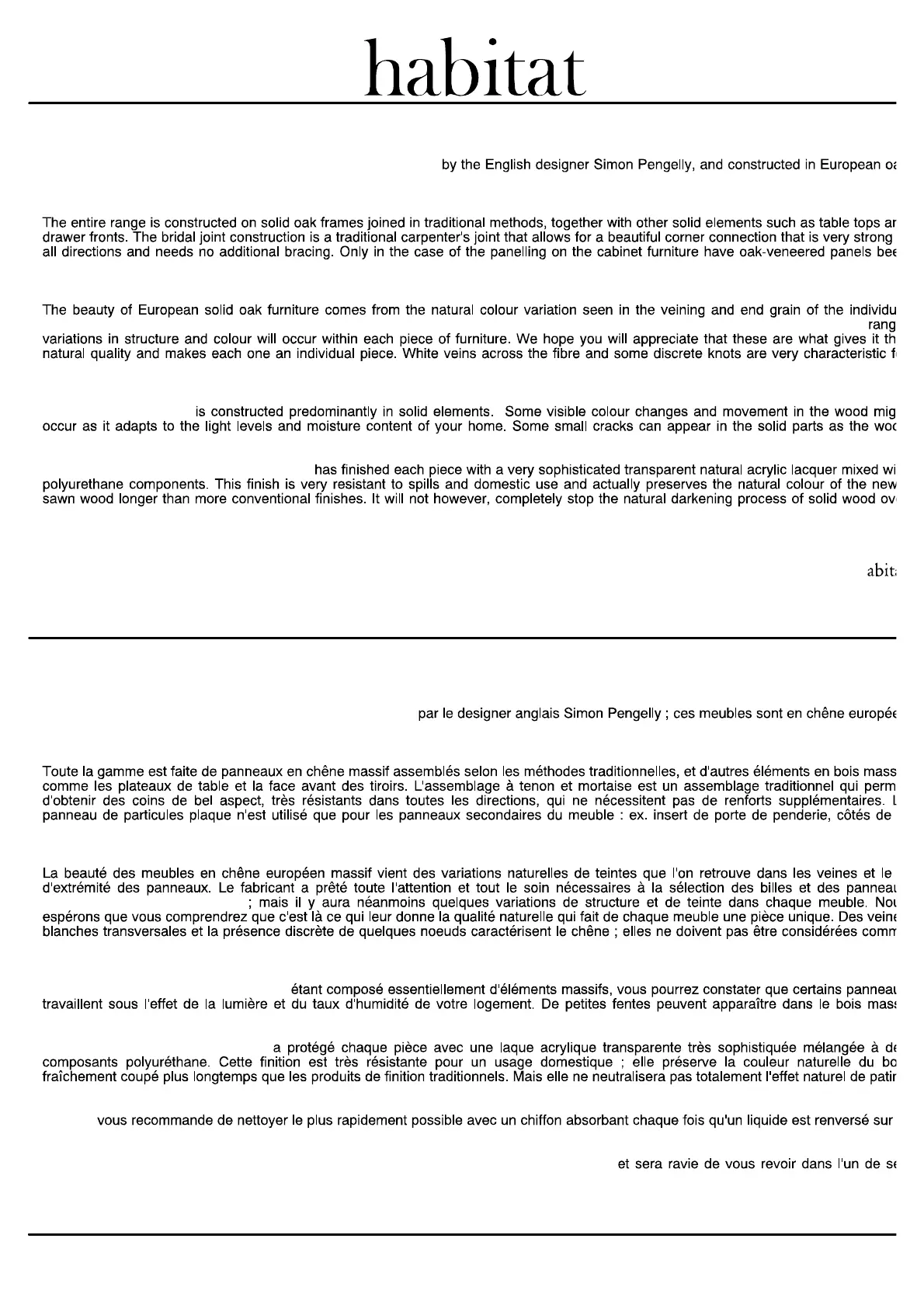 oak, and should not be considered as defects, but as natural characteristics of solid wood furniture.