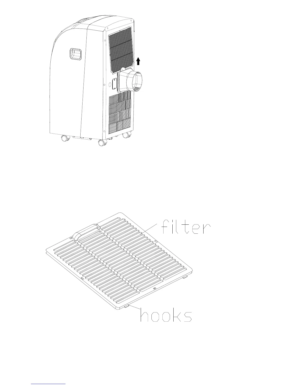 2. Place the hooks at the bottom of the filter cover into the holes in the case; push it back into