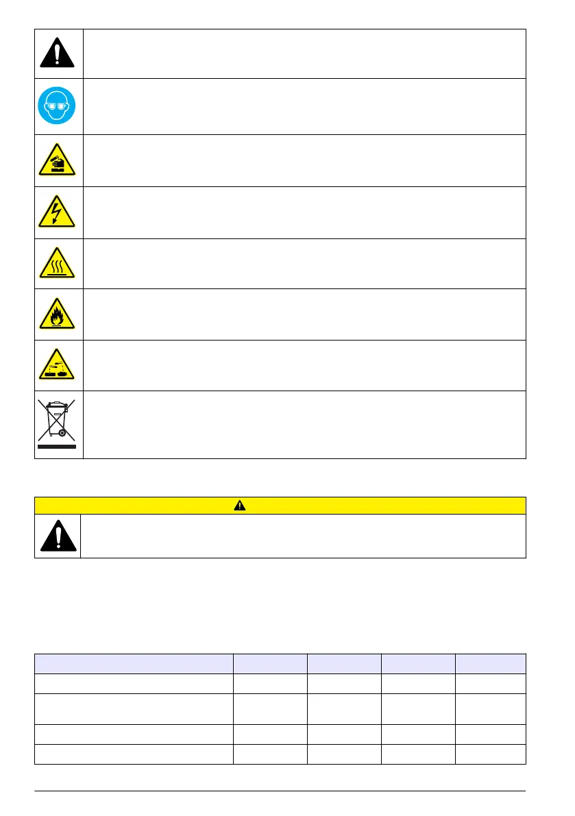 This symbol identifies the presence of a strong corrosive or other hazardous substance and a risk of