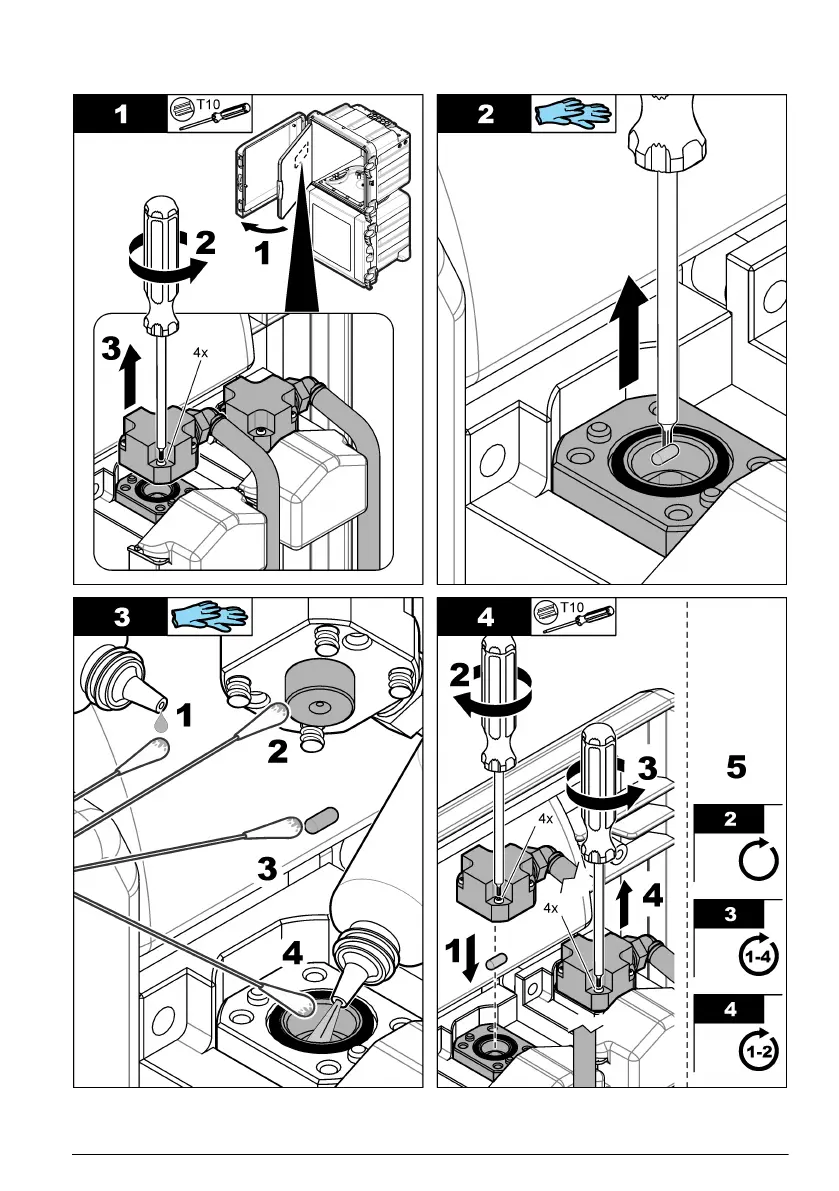 Items to collect: Cotton swabs, cleaning solution, T10 Torx driver and protective gloves.