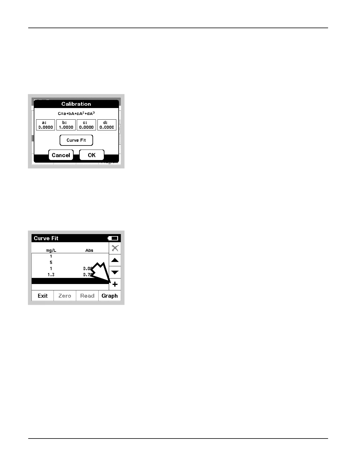 the instrument will calculate the coefficients of the formula, based on the points
