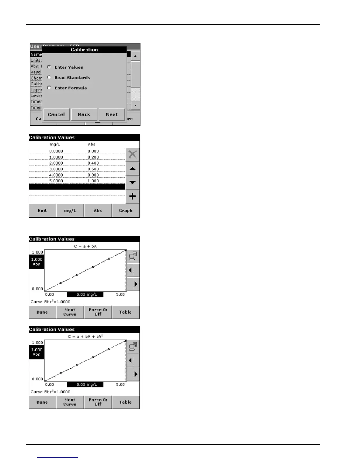 NEXT CURVE to display the polynomial 2nd order curve. Press