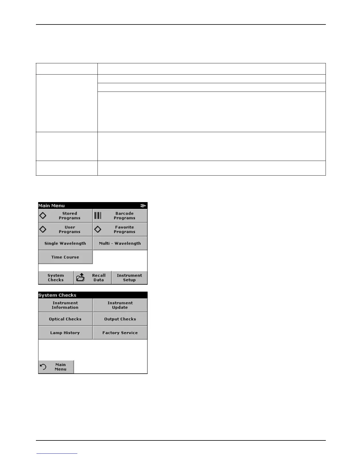 1. From the Main Menu, press SYSTEM CHECKS.