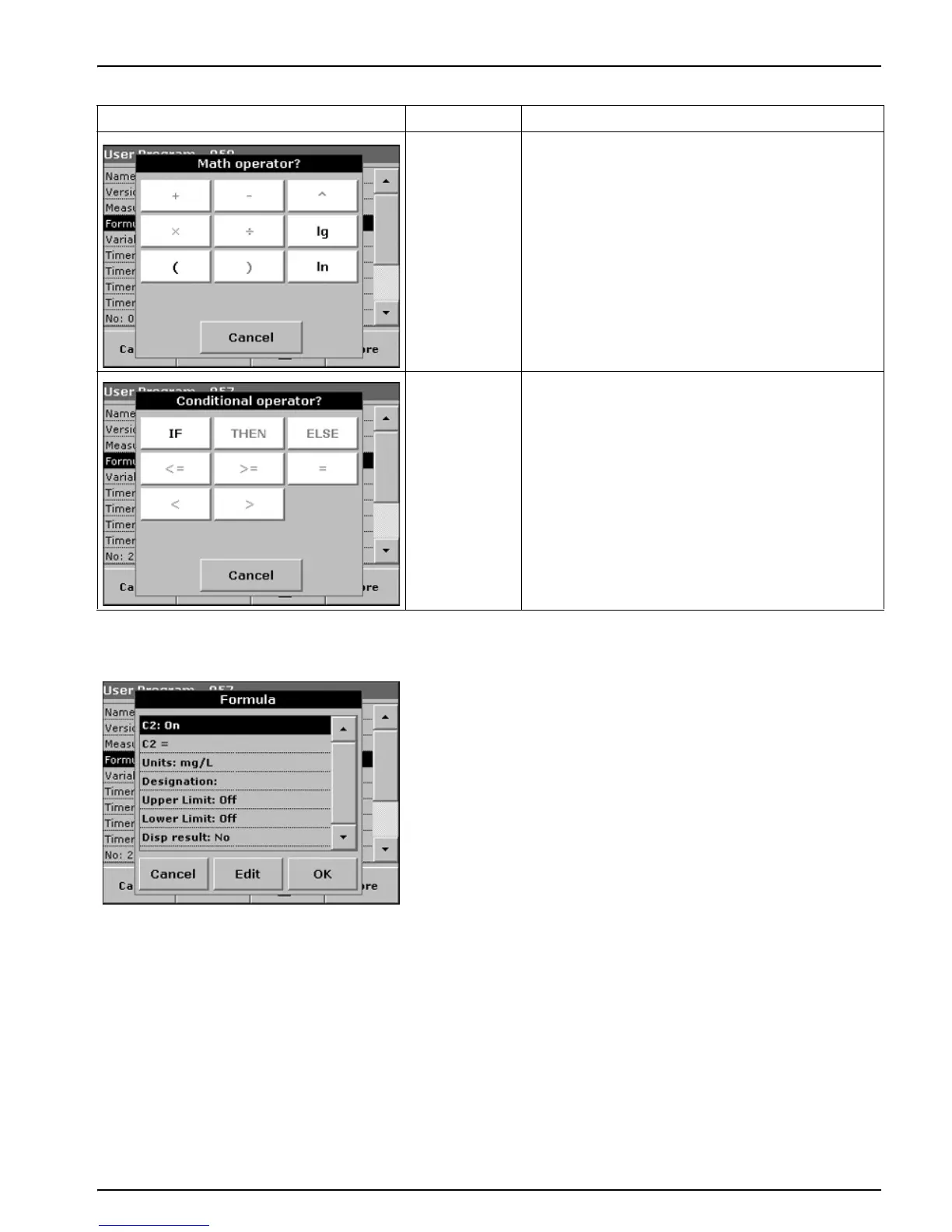 Table 16 Edit Formula Key Descriptions (continued)
