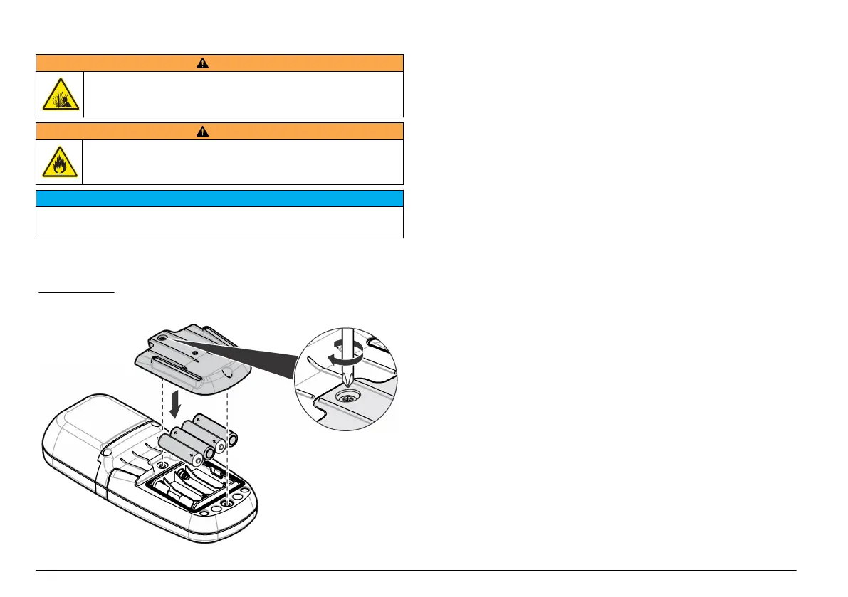 爆炸危险。电池安装不正确会导致释放爆炸性气体。确保以正确的朝向