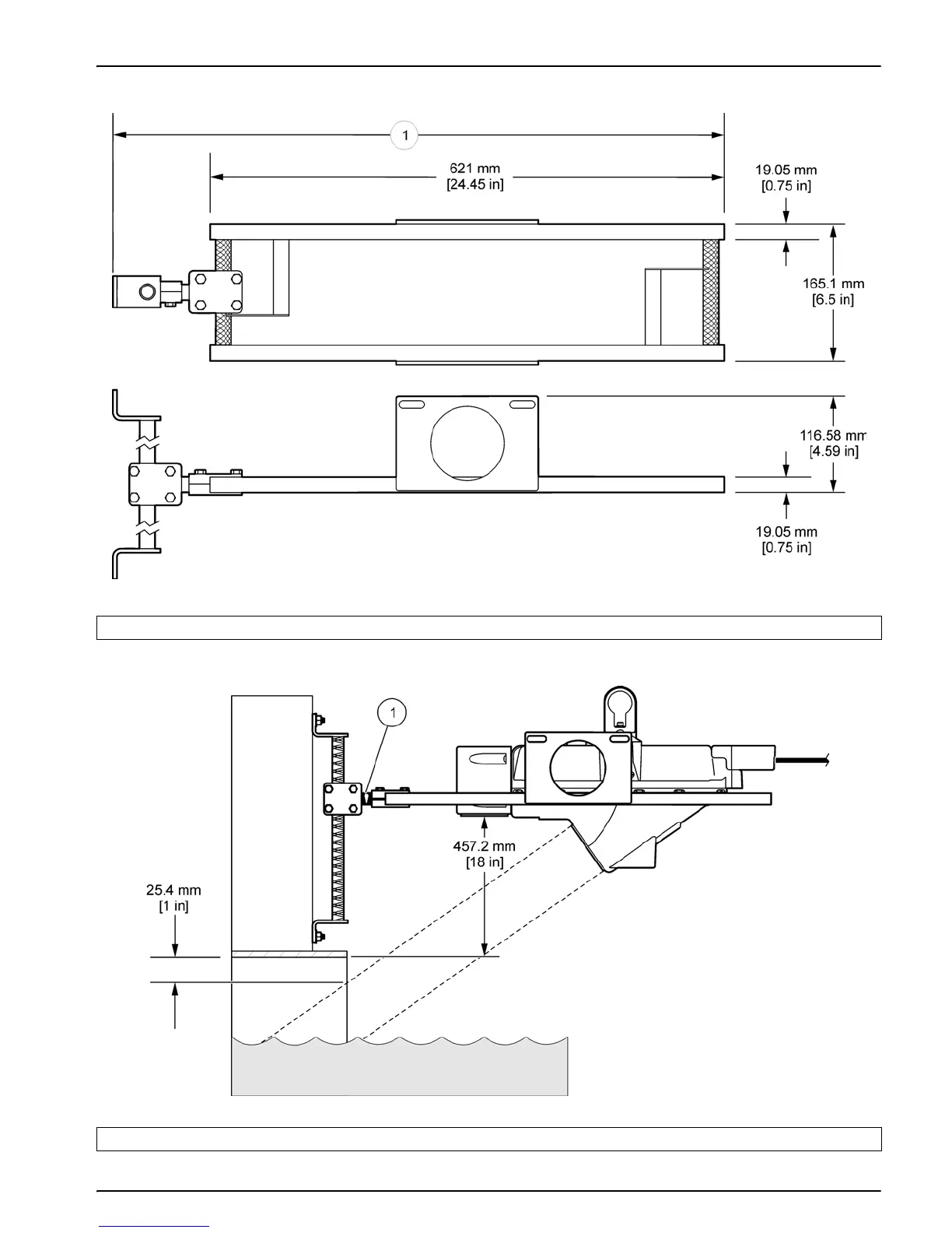 1 29.1 in. with 2¼ in. spacer; 38.8 in. with 12 in. spacer