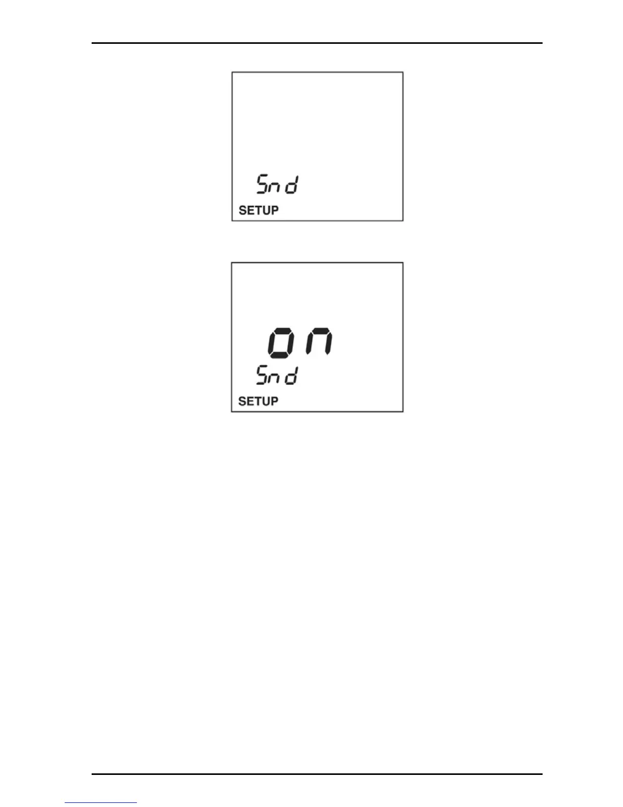 3. Push ENTER. The display will show the sound status (ON or OFF).