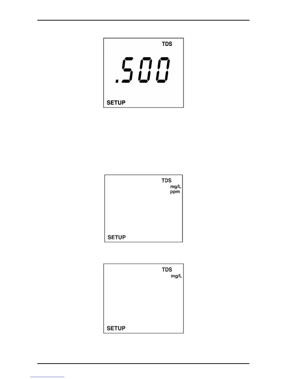3. Push ENTER. The display will show the TDS units. Use the arrow keys to set