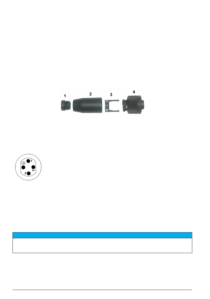 1. Vezměte užší konec konektoru (4) do jedné ruky a hlavní část (2) do druhé a oba díly