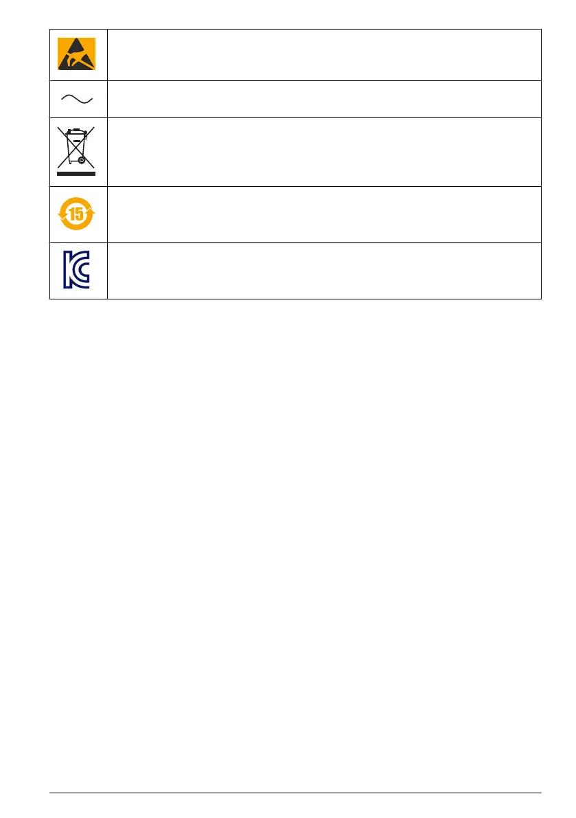 Ez a szimbólum elektrosztatikus kisülésre (ESD) érzékeny eszközök jelenlétére figyelmeztet, és
