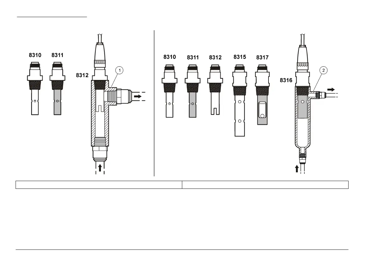 1 Läpivirtauskammion T-liitin, PVC, 3/4 in NPT 2 Läpivirtauskammion T-liitin, ruostumatonta terästä, 1/4 in NPT