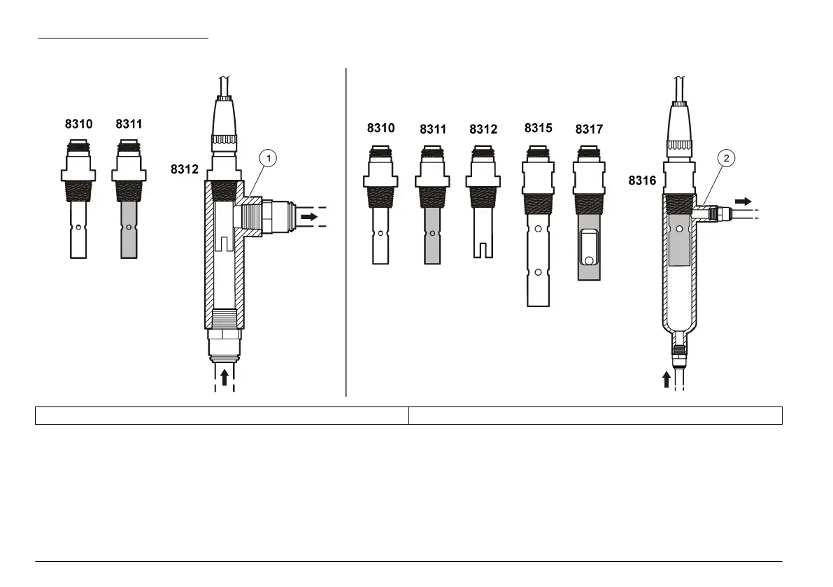 1 Fixation en T de circulation, PVC, 3/4 po NPT 2 Fixation en T de circulation, acier inoxydable, 1/4 po NPT