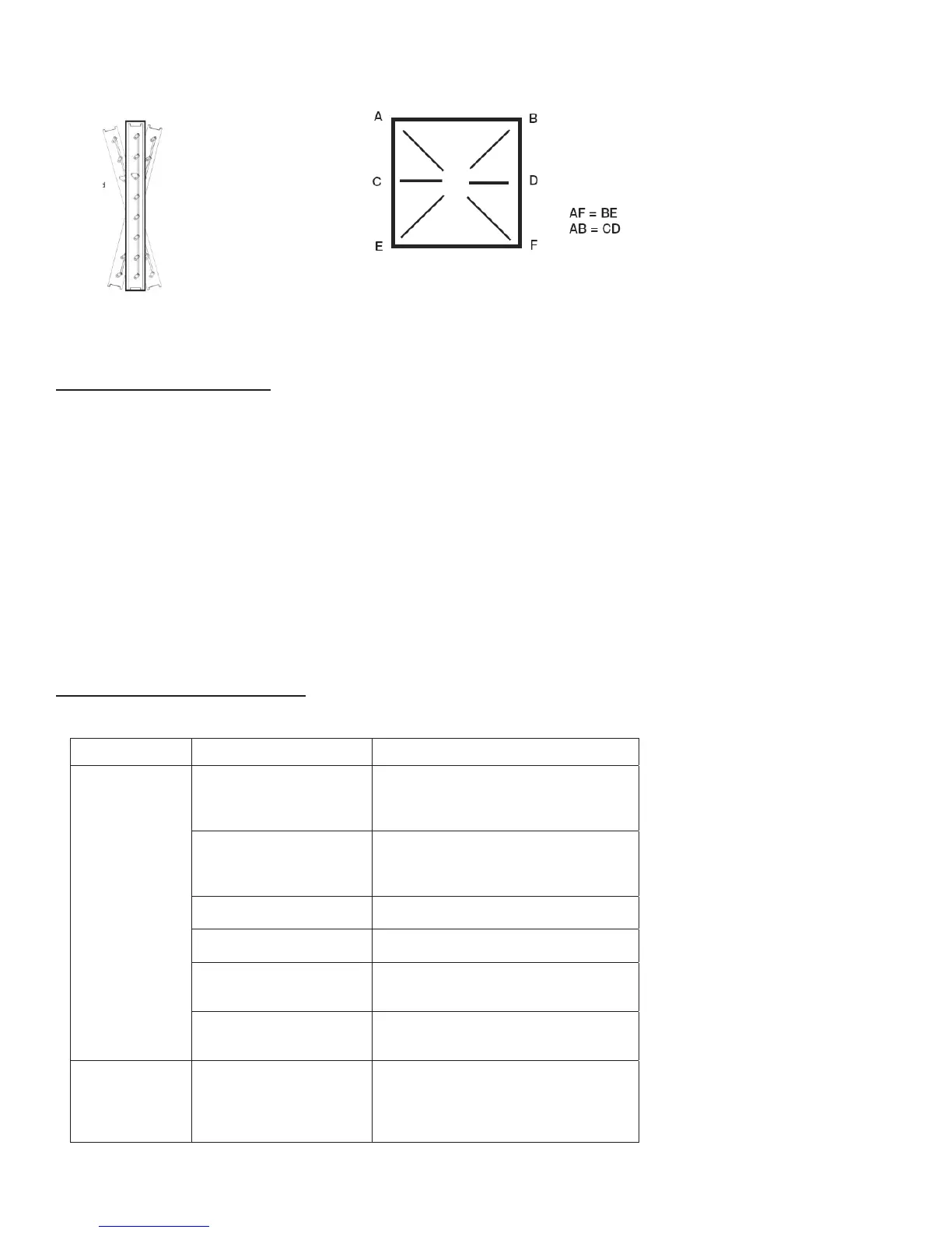 or bending. Measure diagonally from upper corners to opposite lower corners of each section (see drawing below).