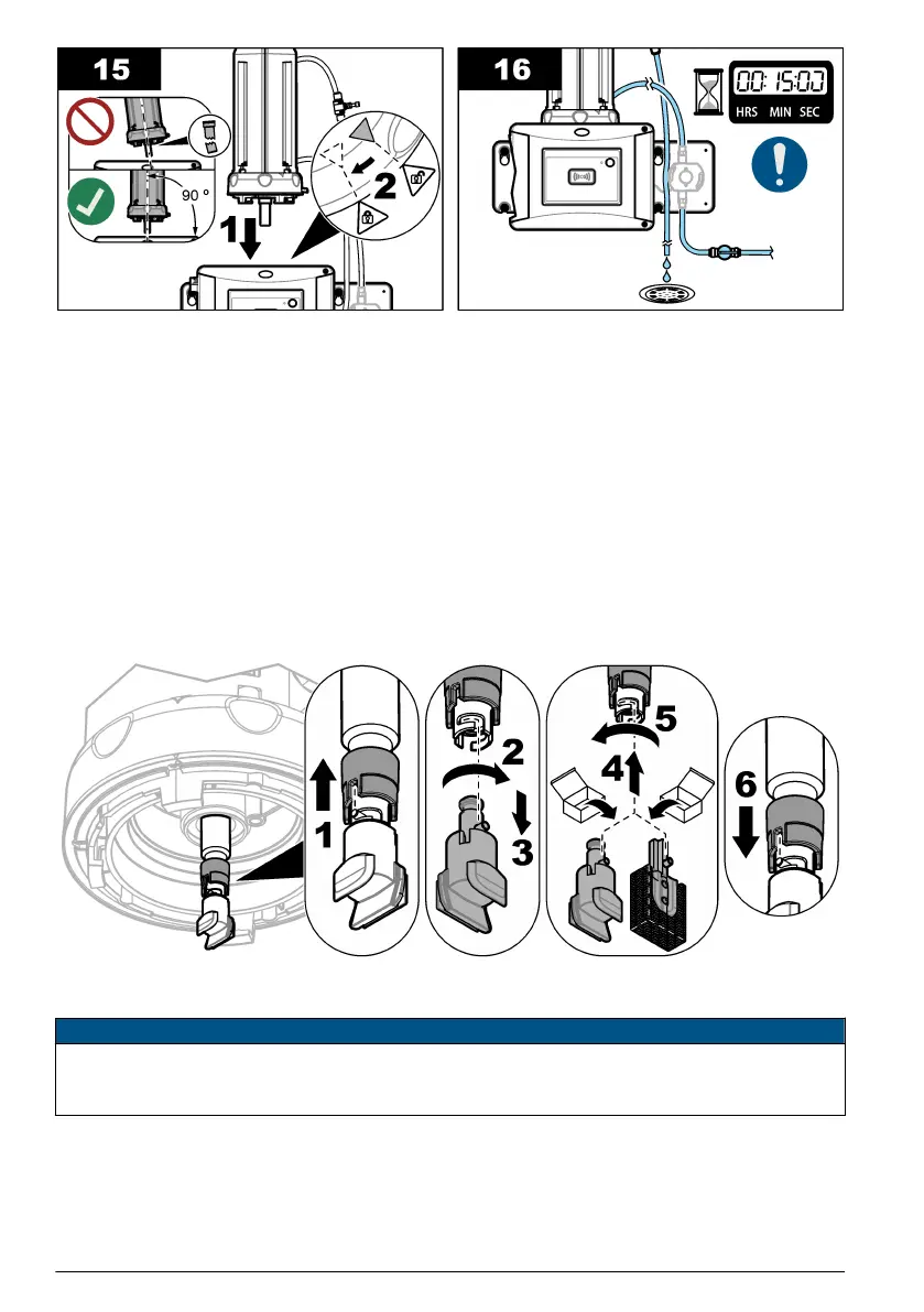 1. Set the flow shut-off valve to off. Install the automatic cleaning module on the service bracket.