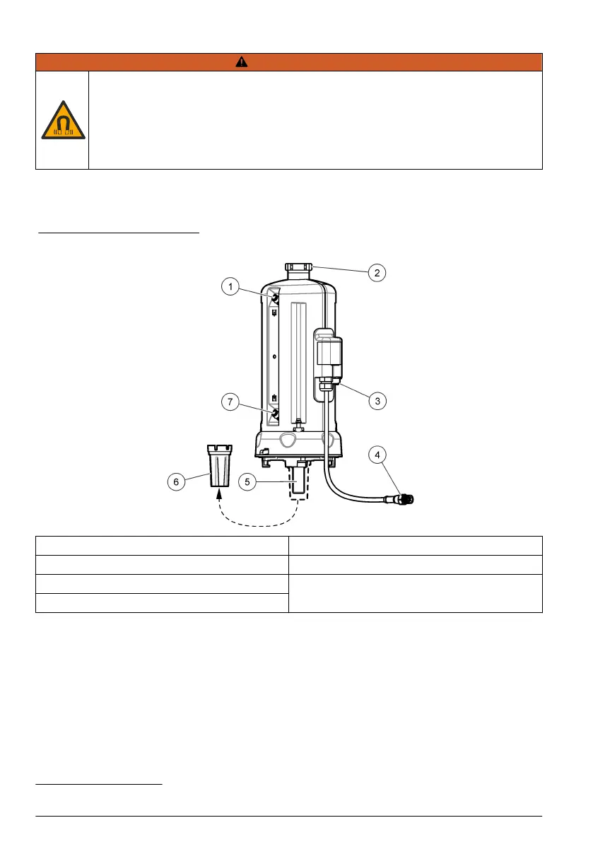 1 Näytteen ulostulo 5 Näytepullo