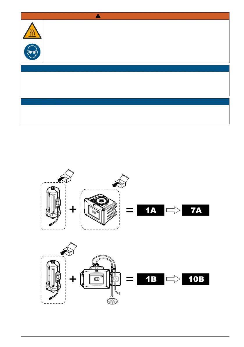 Se o turbidímetro incluir tubagem, siga os passos ilustrados de 1B a 10B. Realize um teste de