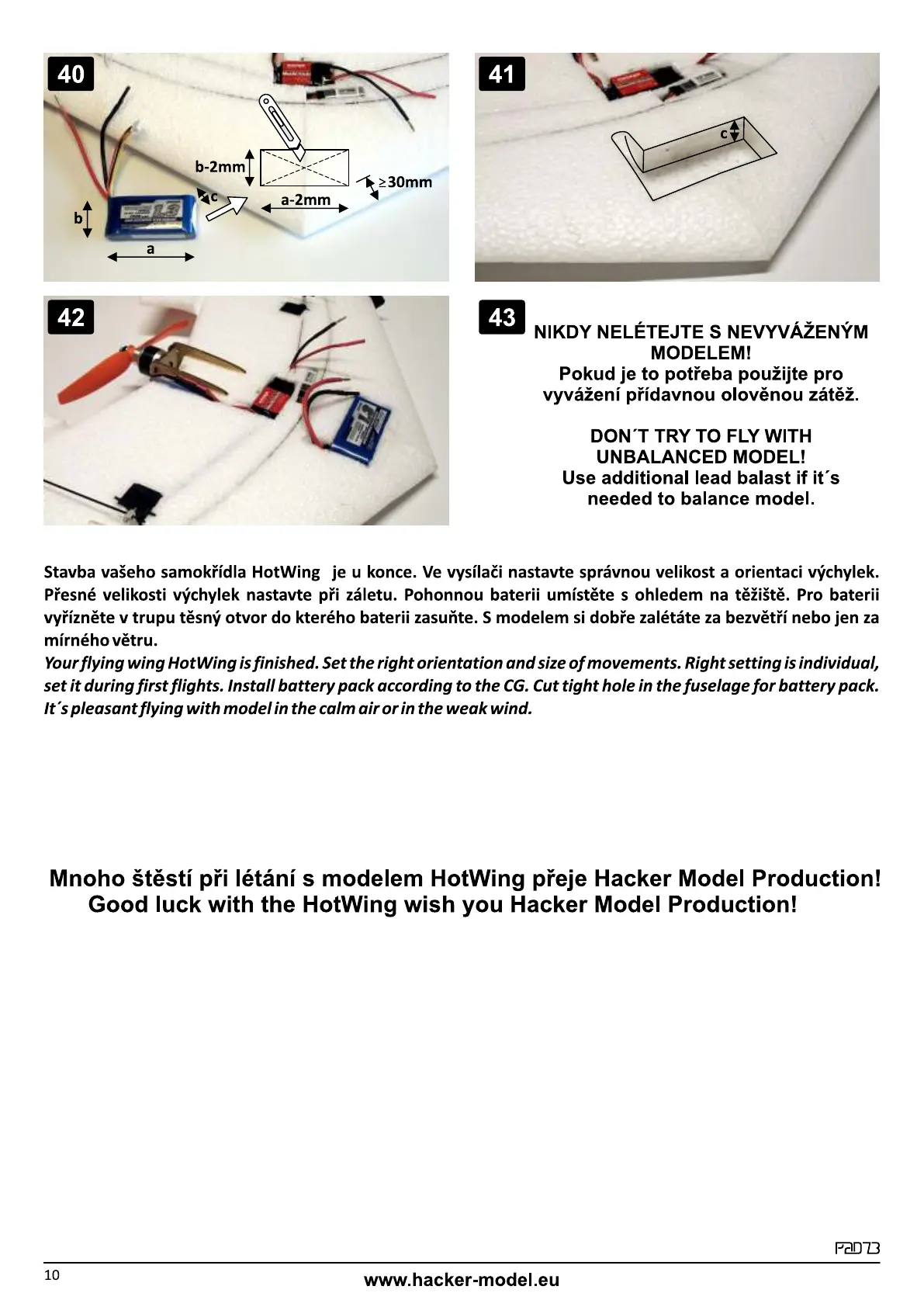 Hacker Hotwing 1200 - Final Assembly and Balancing; Setting Control Movements and Battery Placement; Unbalanced Model Warning